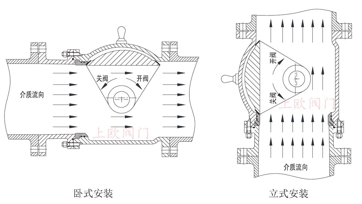 蝶式閥門擁有體積優(yōu)勢,但由于其閥板畢竟處于流道中央,無法避免介質(zhì)對閥板、閥軸以及閥座密封面的沖刷和閥板對介質(zhì)流通產(chǎn)生的阻礙,容易產(chǎn)生渣質(zhì)的堆積與密封的實(shí)效,故不能較長時間滿足工況要求。