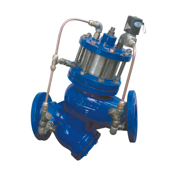 主閥上腔控制室的水不能流出,控制室升壓,推動活塞關閉主閥;本產品利用導閥控制閥門的開啟和關閉,反映準確快速,采用三向電磁閥,維護簡單;安裝于各類給水系統的管道上。