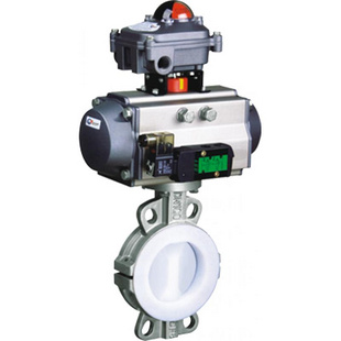 D671F46氣動對夾式襯氟蝶閥采用帶有球形密封表面的襯氟塑料包襯蝶板,配以閥座基部的硅橡膠襯墊調節閥門的密封性能;該閥門操作輕便,嚴密的密封性能,超長的使用壽 命;可作快速切斷或調節流量之用。適用于要求可靠密封和良好調節特性的場合。閥體采用分體式,閥軸現端的密封由蝶板與閥座之間的旋轉基面加氟橡膠來控制, 從而達到產品結構緊湊、外形美觀、工藝合理、性能可靠。保證閥軸不與腔內流體介質接觸,更換閥軸時非常方便,閥門不需要拆離離管道即可完成。產品廣泛適用 于各種不同類型工業管道中液體和氣體(包括蒸氣)的輸送,特別是具有嚴懲腐蝕性介質的使用場合如硫酸、氫氟酸、磷、酸、氯氣、強堿,王水等具有強腐蝕的介質。
